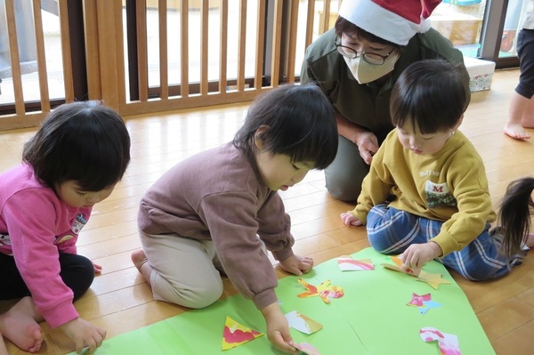 それぞれのお部屋では、クリスマスにちなんだお話をきいて、歌を歌ったりゲームをしたり、楽しい時間を過ごしました。