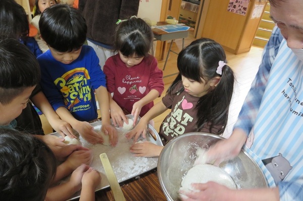 丸めたり形を整えたりしながら、出来上がりをうれしそうに眺める姿が見られ、心温まるひとときとなりました。